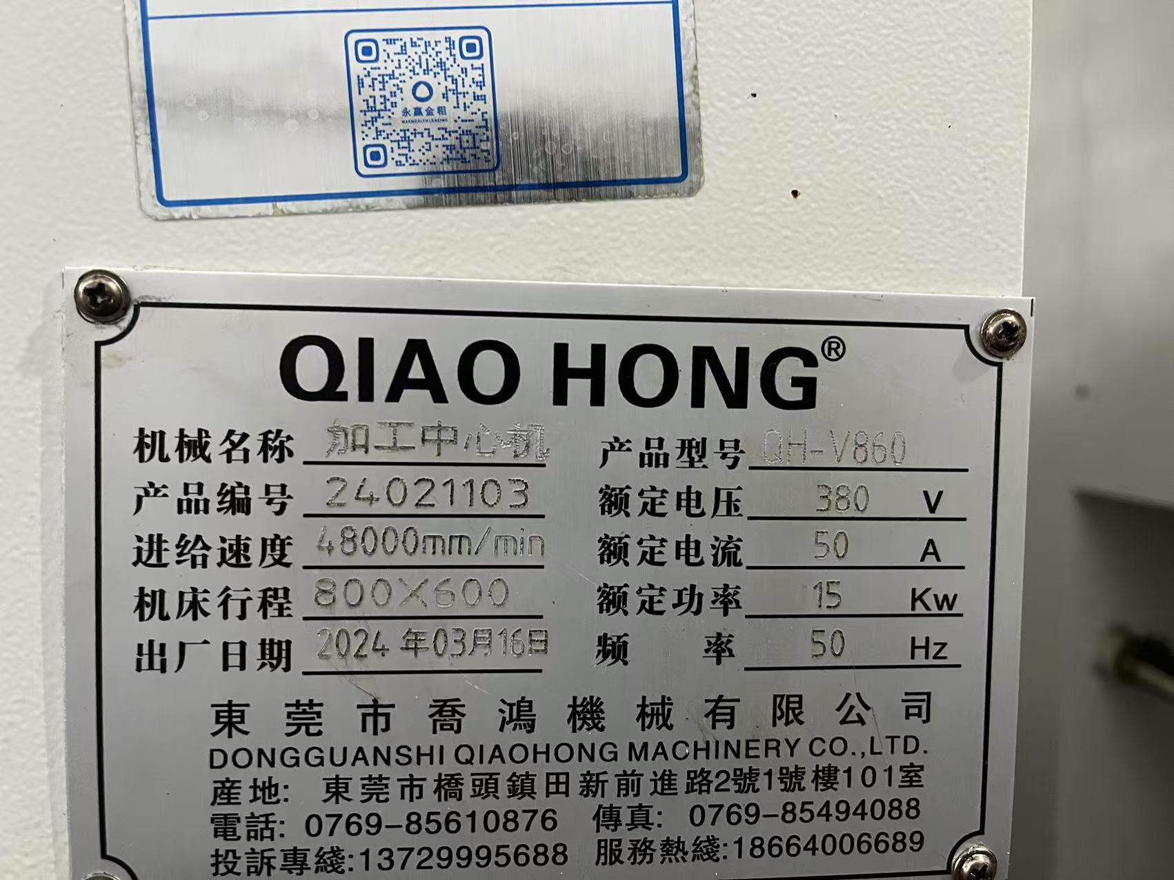 轉(zhuǎn)讓準(zhǔn)新喬鴻加工中心,型號:V-860機,三菱M80系統(tǒng),BT40主軸12000轉(zhuǎn),行程800 x600 ,三軸45滾柱線軌,準(zhǔn)新機,使用4千多個小時,2024年出廠,機況漂亮,準(zhǔn)新機二手價